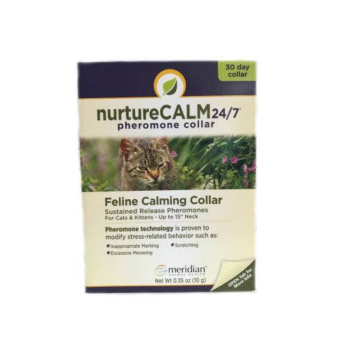 NurtureCALM 24/7 Pheromone Collar mimics the pheromone that the mother cat produces to calm and reassure her kittens. Cats recognize these pheromones throughout life. Pheromone behavior collars mimic the natural way to help cats cope with new and fearful situations.