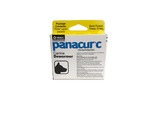 Panacur (fenbendazole) is used to treat hookworms, roundworms, tapeworms, and whipworms in dogs. It is used by veterinarians to treat other parasites as well. It is available as 1Gm, 2Gm, and 4Gm powder packets. The usual dose for dogs is one packet, based on weight, given once a day for 3 consecutive days. The medication can be mixed with a small amount of the animal's usual food. Dry dog food may require slight moistening to allow for proper mixing.
