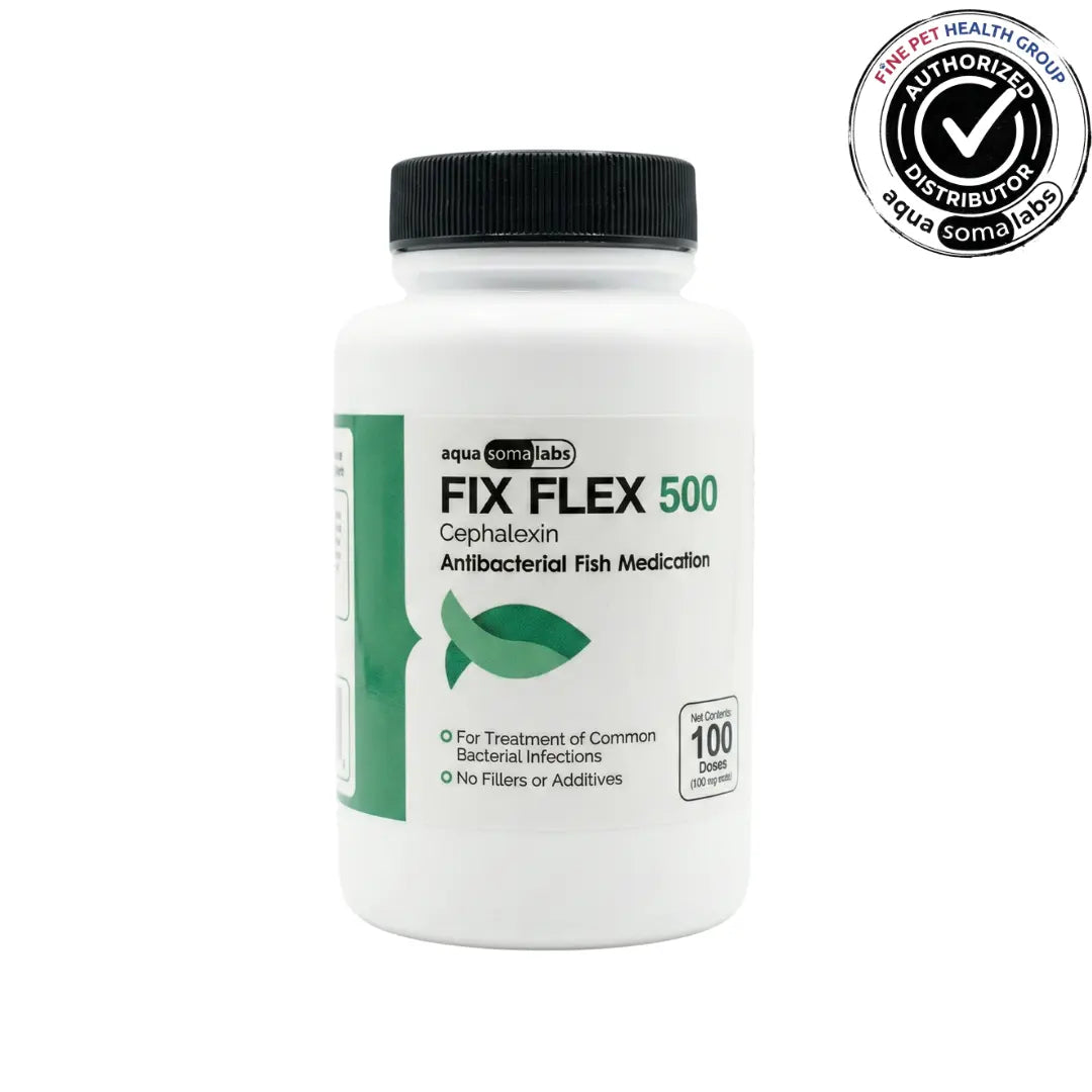 Fix Flex, also known as Fish Flex, is a cephalexin fish antibiotic in capsule form made for ornamental aquarium fish and non-food pet birds. It is not intended for people or for animals raised for meat, eggs or other food products.